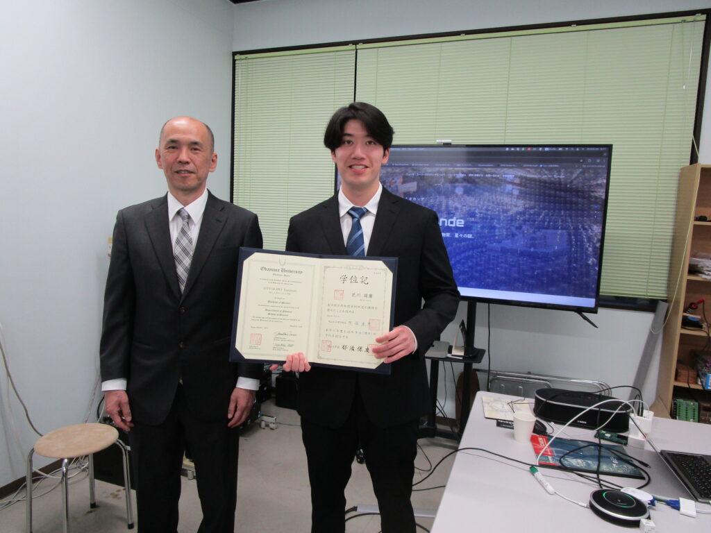 本研究室からは、D3の中西さんが博士、M2の濱口くんが修士、B4の目黒くん、花川くんが学士の学位を授与されました。おめでとうございます!