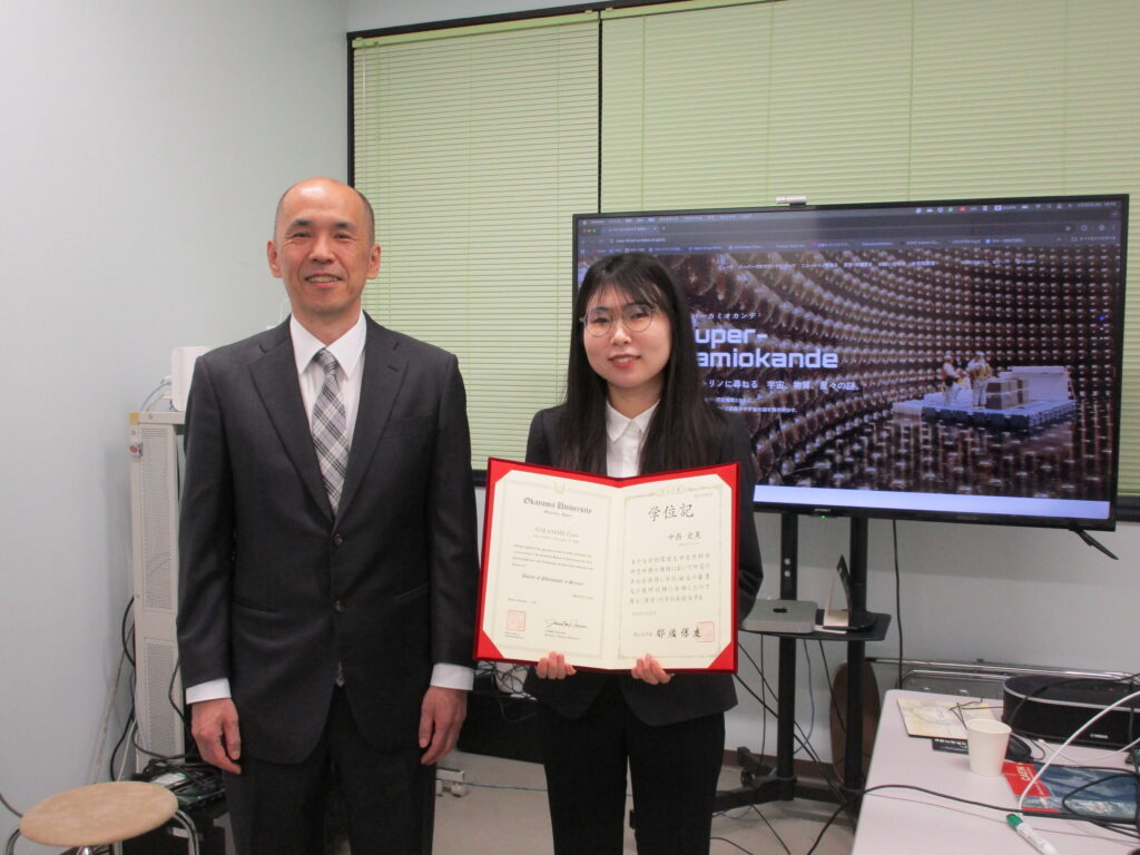 From our laboratory, Nakanishi-san was awarded a doctoral degree, Hamaguchi-san received a master degree, and Meguro-san and Hanakawa-san were awarded bachelor degrees. Congratulations!