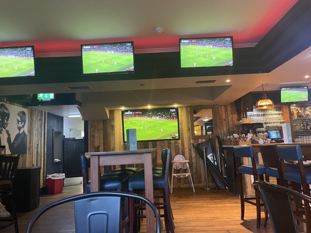 Wiganに行く電車も運休になってしまい、Manchesterの街を徘徊しPubでビールを飲みながらフットボールの試合を観ています。