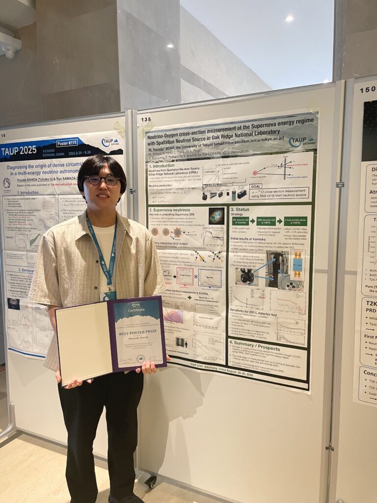 TAUP2025 (19th International Conference on Topics in Astroparticle and Underground Physics) が2025年8月24日~30日の日程で中国の西昌 (XiChang) にて開催されました。本研究室からは、多田 (D2) が参加し口頭発表を行いました。